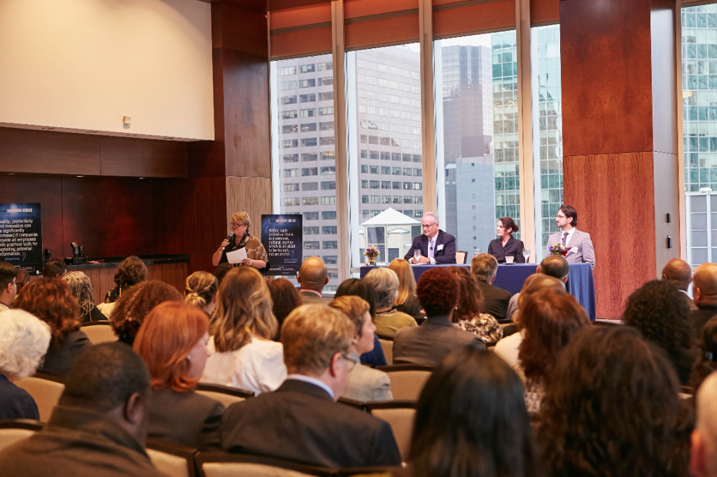 A panel of thought leaders led a lively and insightful discussion, touching on how intelligent organizations leverage their key assets – people, knowledge, data and analytics – for competitive advantage in the marketplace. The panel included Mike Turpin, Executive Vice President and Managing Consultant, USI Insurance Services; Leila Araiche, Managing Director in Brookfield Property Partners’ Real Estate Group, and Enrique Arbelaez, Co-Founder and Managing Partner of Cien+, an innovative consultancy and marketing services firm that employs big data insights and cultural intelligence to help leaders and brands turn cultural trends into opportunities.